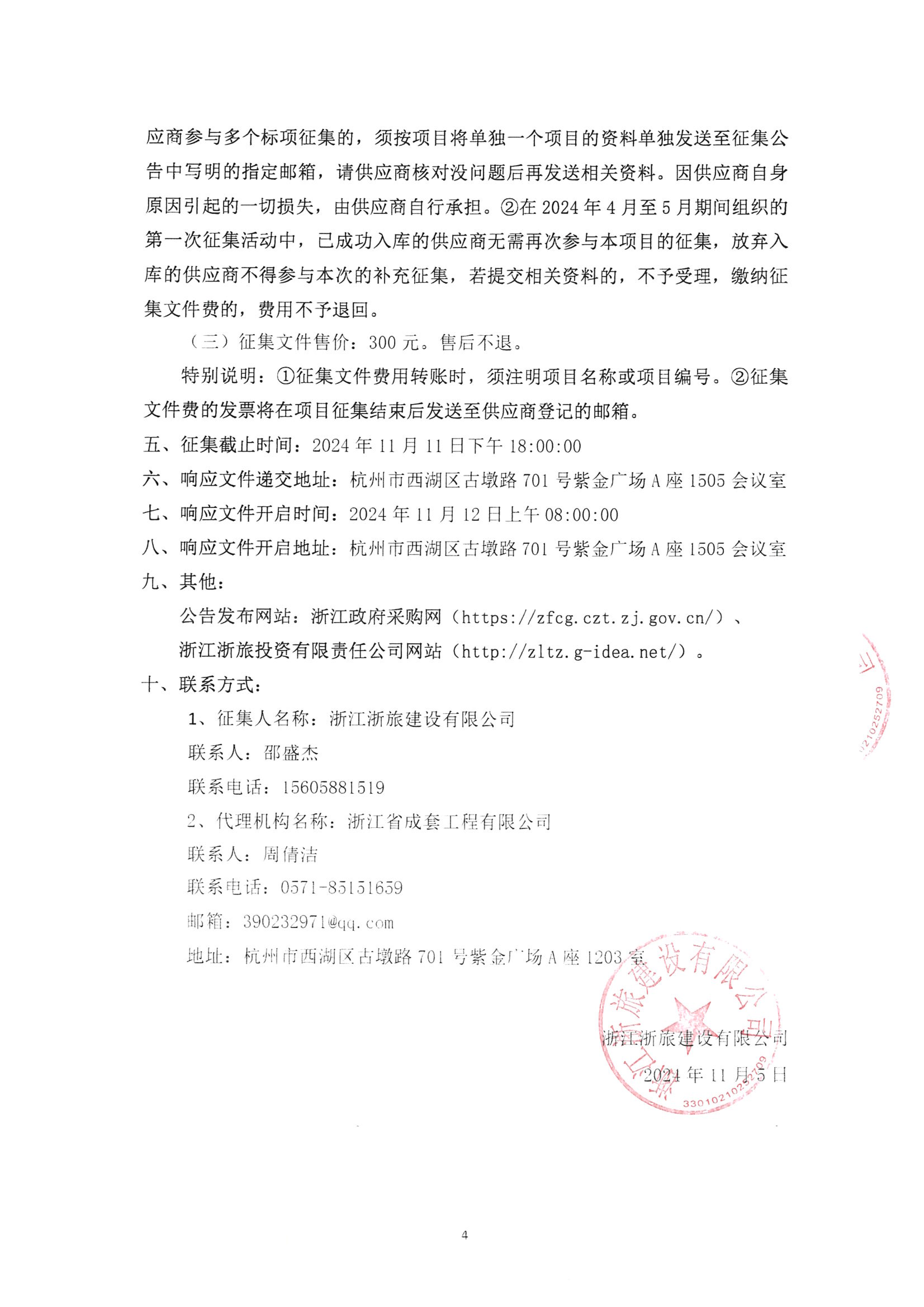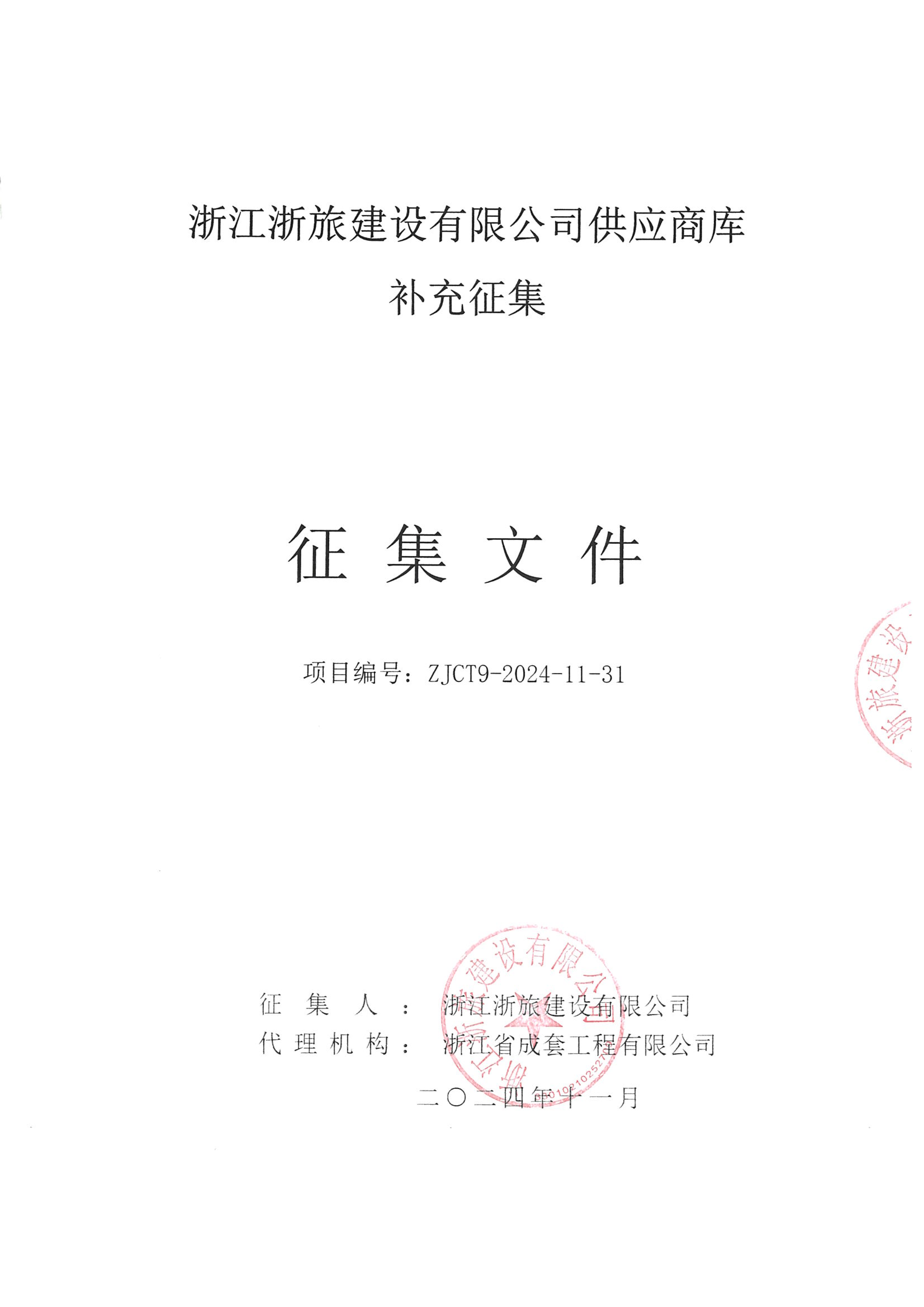 浙江浙旅建設有限公司供應商庫補充征集(二)征集公告